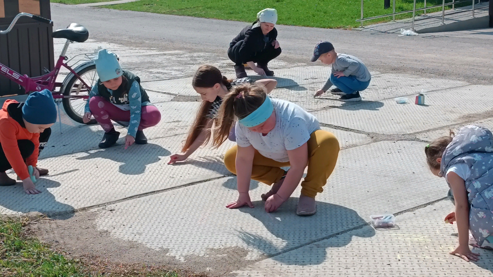 Дети с энтузиазмом взялась за разноцветные мелки, и вот скучный темно-серый асфальт заиграл всеми цветами радуги. Участники конкурса своими рисунками превратили серую площадку в мир детской мечты, заставляя взрослых задуматься о счастье своих детей и сохранении мира на земле. Конкурс завершился, а мы еще долго будем любоваться яркими детскими рисунками на асфальте.