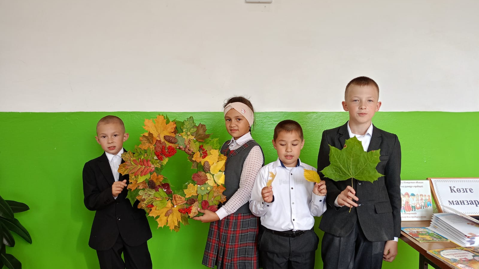 В мастер-классе по плетению венков из листьев ребята смогли проявить свои творческие способности и фантазии. Венок из осенних листьев сделанные своими руками , отличались теплотой, Осень – чудесная пора, которая дарит нам разноцветные краски, вкусные сюрпризы и яркие моменты жизни. Кто-то любит осень, кто-то нет, но равнодушных людей к этой разноцветной поре нет. Полюбить осень и рассказать об этом замечательном времени года помогают книги. Прекрасному времени года 20 сентября 2023 г. в Ново Мичанском СДК совместно сельской библиотекой проведен тематический час"Осеннее чудо".Оформлена тематическая книжная выставка «Козге манзара». На книжной выставке представлены книги «Писатели и поэты об осени». Красота осени ни в сказке сказать, ни пером описать – ведь не зря же красавица-осень является вдохновителем многих поэтов и писателей всех времен и народов на красивейшие произведения о красках этого удивительного времени года! Каждый из них по-своему увидел и описал осеннюю природу.