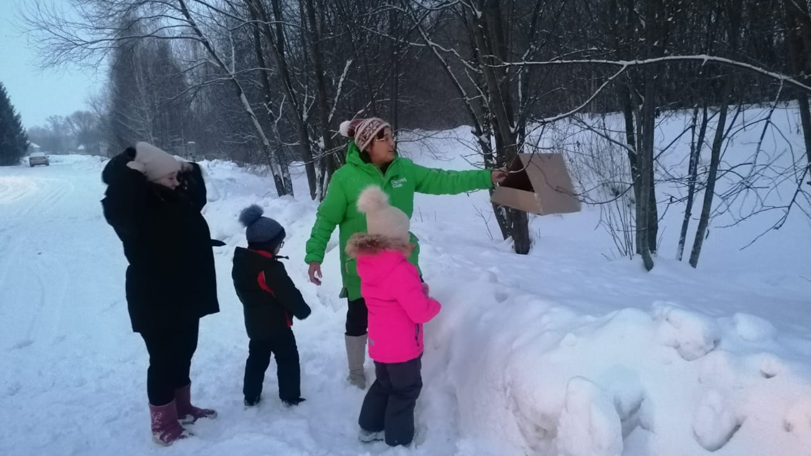 Вооружившись знаниями и заранее подготовленными кормушками, участники развесили «птичьи столовые» с крупой и семечками на ветках деревьев. Прошло совсем немного времени, как прилетели синички и стали осваивать свои новые лесные столовые.
