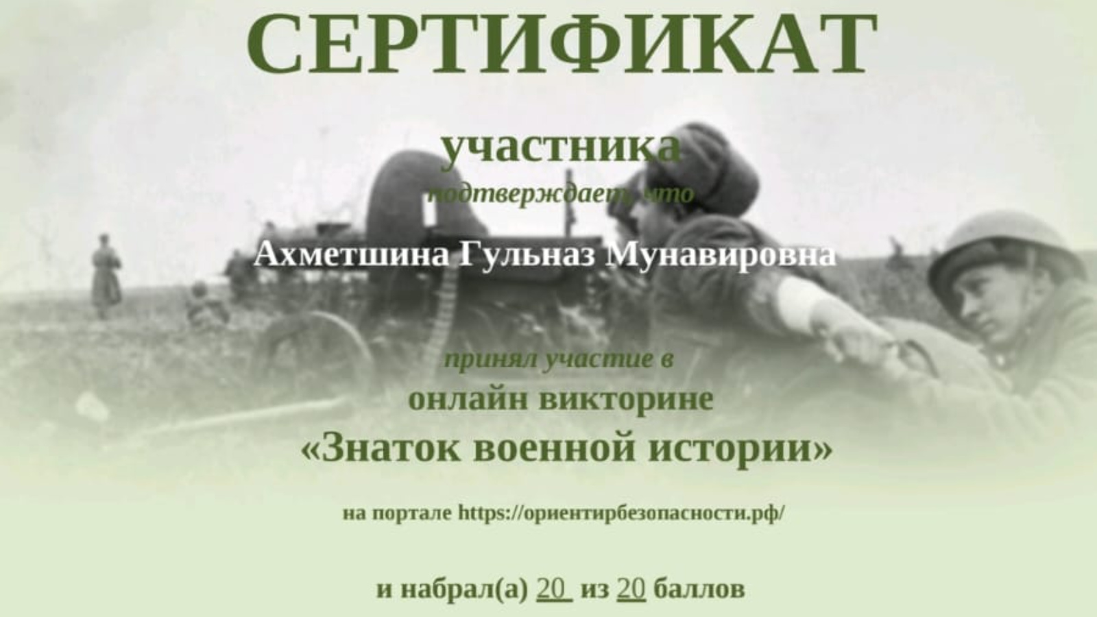 11 апреля специалисты Шеморданского СДК приняли участие в онлайн викторине «Знаток военной истории». Ахметшина Г.М, Садыйкова Г.Х, Фатхуллина С.М, Гайнуллина Д.Ш. были награждены сертификатами.