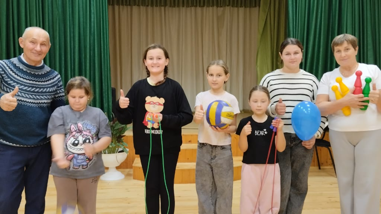 Две команды, в составе которых были дети и взрослые, приняли участие в спортивных эстафетах с мячом, шарами, кеглями и скакалкой.