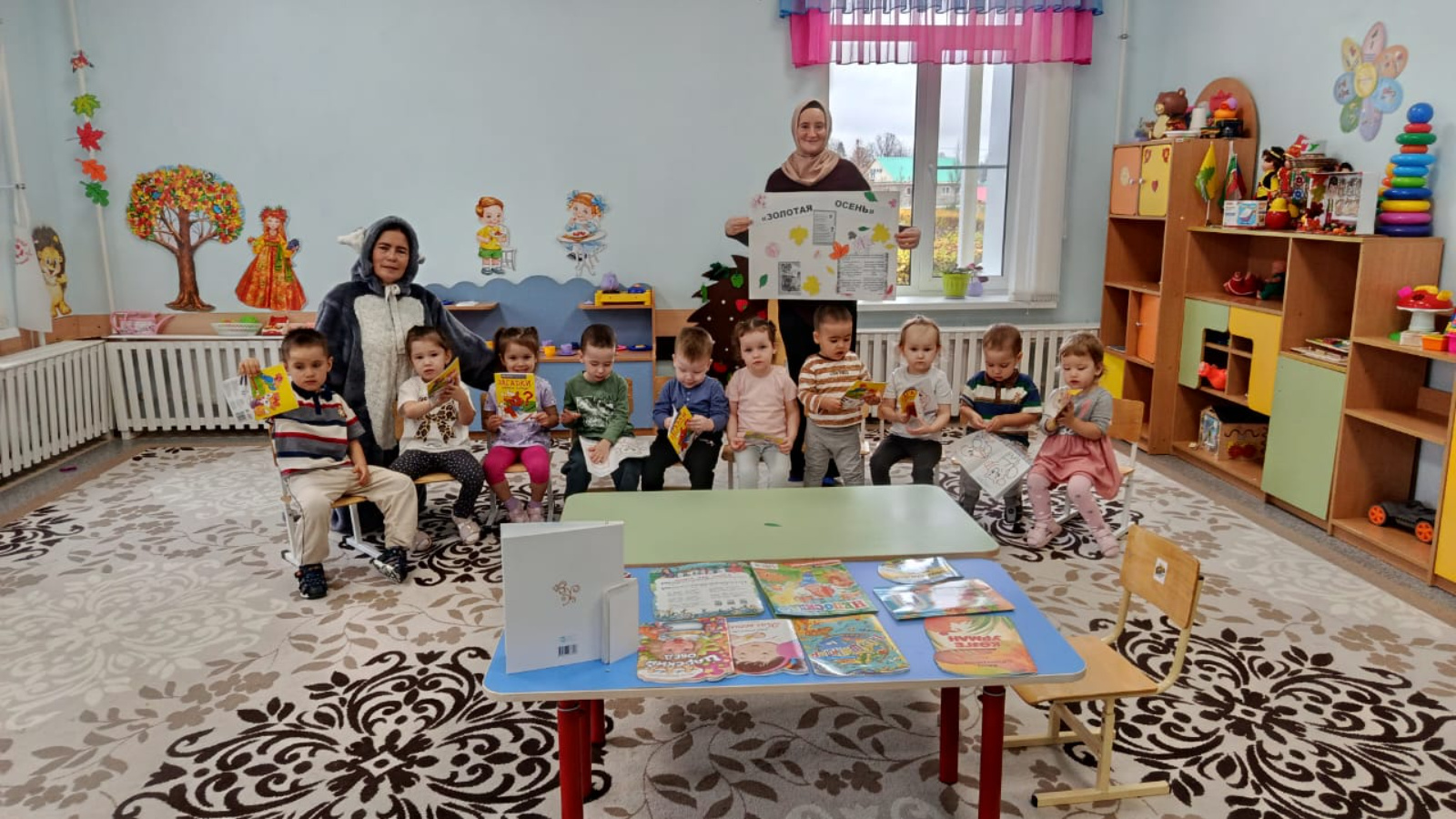 На этой неделе в детском саду «Ляйсан» проходит неделя книг. Трудно себе представить жизнь без верного друга — хорошей книги. На свете существует множество книг — маленьких и больших, совсем тоненьких и толстых. Каждая из них открывает нам путь в удивительную страну. Страну, которой нет ни на одной карте мира — страну Сказкино. В связи с этим, 29 октября сотрудники Лесхозского СДК провели тематический час «В гостях у сказки». Сначала малышам было рассказано что такое книга, какие книги бывают, как обращаться с книгами. Потом к детям пришла сказочная Кошка. Детишки вместе с Кошкой создали книжку «Репка». И даже успели выпустить газету "Золотая осень". Тематический час получился интересным, насыщенным, а самое главное полезным для развития кругозора ребят.