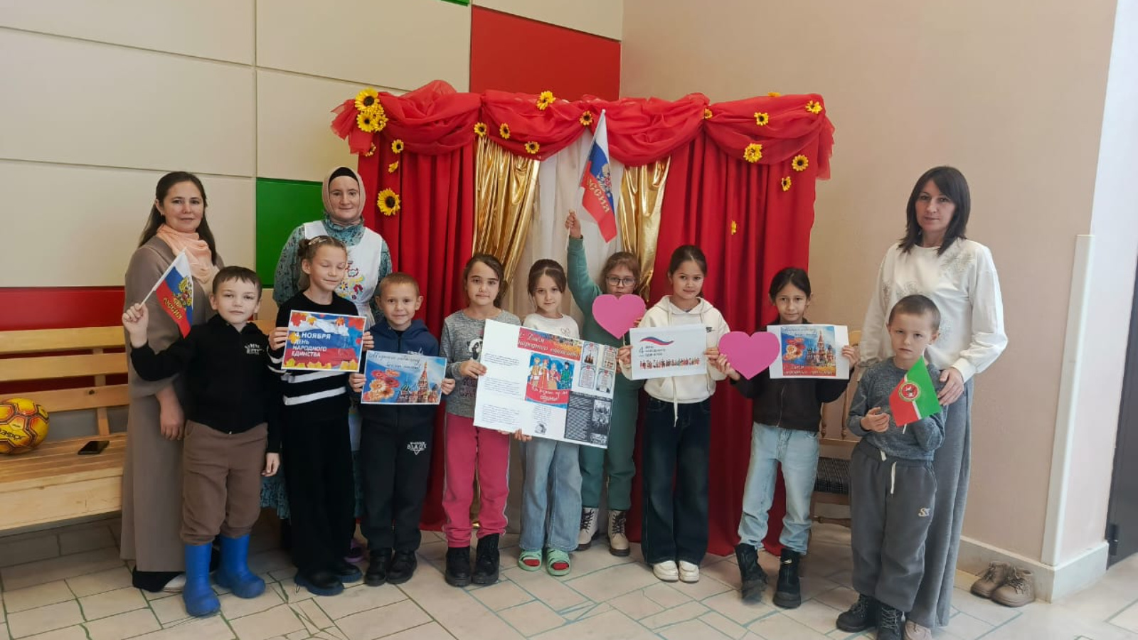 Началось мероприятие с Гимна Российской Федерации. Далее ребята познакомились с историей возникновения праздника, с русскими героями – Кузьмой Мининым и Дмитрием Пожарским, благодаря которым в России завершилось смутное время и начался новый этап истории России. Поговорили о нашей многонациональной стране, о промыслах и ремеслах, культуре и искусстве, об обычаях и кухне народов России.