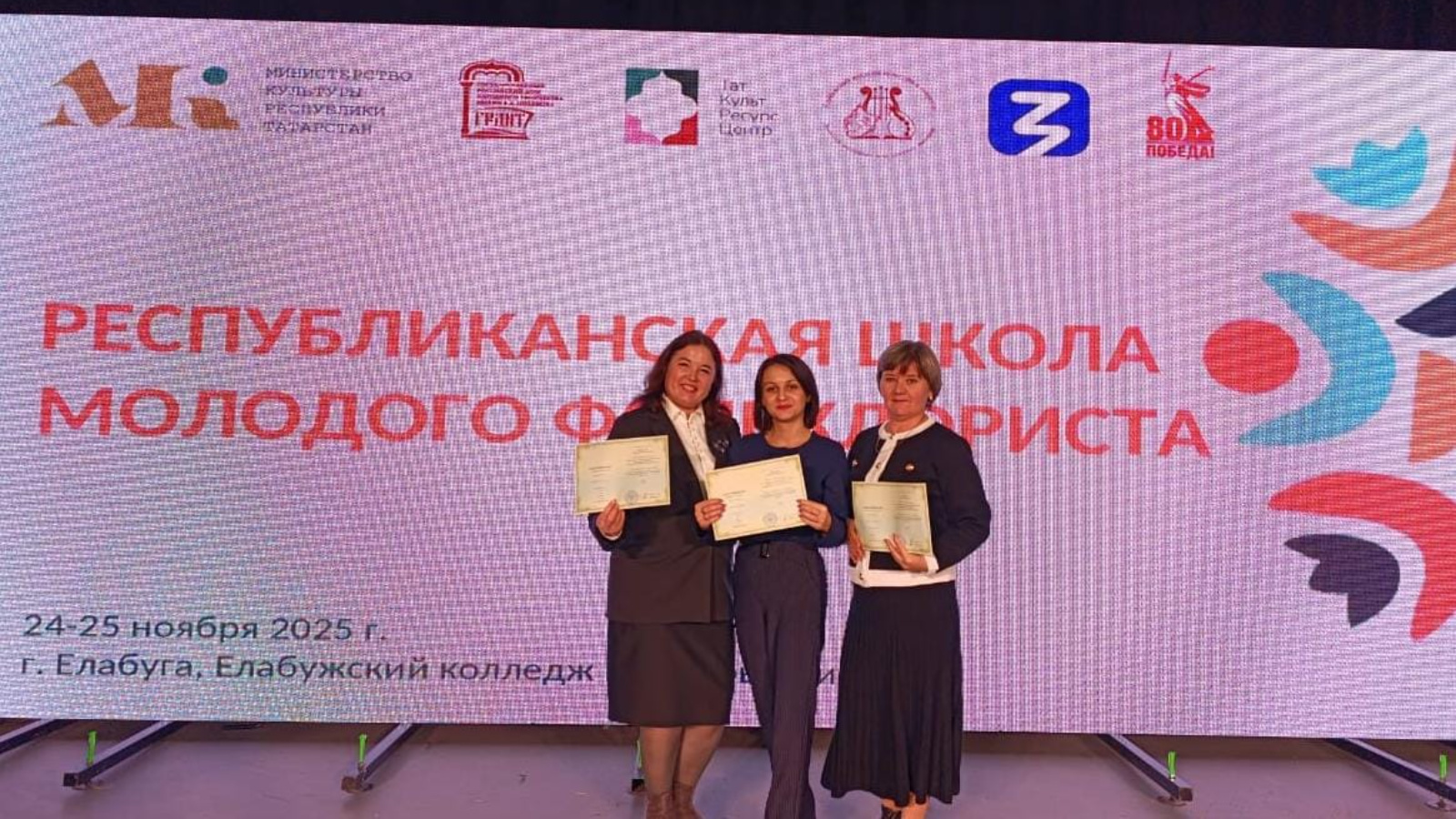 С 24 по 25 ноября на базе Елабужского колледжа культуры и искусств состоялся Республиканский семинар‑практикум «Школа молодого фольклориста». В рамках этой интенсивной образовательной программы художественный руководитель Иштуганского СДК Гайнутдинова М. Т. С коллегами обучалась новым методикам работы.