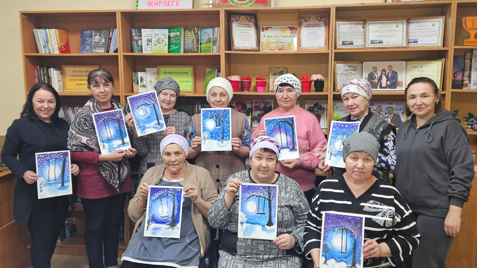 22 января в Изминском СДК состоялся мастер класс с участниками старшего поколения «Оста куллар» под названием «Сказочный зимний пейзаж». Мероприятие проведено совместно с Олуязским СДК. Сначала участникам показали и рассказали пошаговый алгоритм выполнения рисунка, в котором подробно объяснили, как легко и просто нарисовать красивый зимний пейзаж. Участники нарисовали яркую композицию с северным сиянием с заснеженными деревьями и познакомились с различными техниками нетрадиционного рисования. Занятие является своеобразной цветотерапией: оно помогает абстрагироваться от повседневных забот и проблем и окунуться в волшебный мир фантазий!