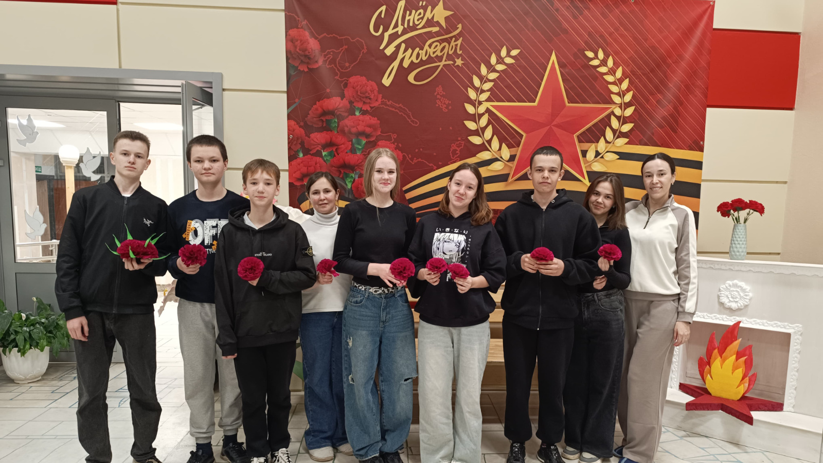 Балалар төсле гофрирланган кәгазьдән күләмле канәфер ясау техникасы белән таныштылар. Һәр адым алдагы гамәлләрне җентекләп тасвирлап барылды, шуңа күрә хәтта иң тәҗрибәсезләр дә тәкъдим ителгән биремнәрне үти алды. Нәтиҗәдә, берничә минутлык тырышып эшләү дәверендә искиткеч чәчәкләр - Җиңү көне символы килеп чыкты.