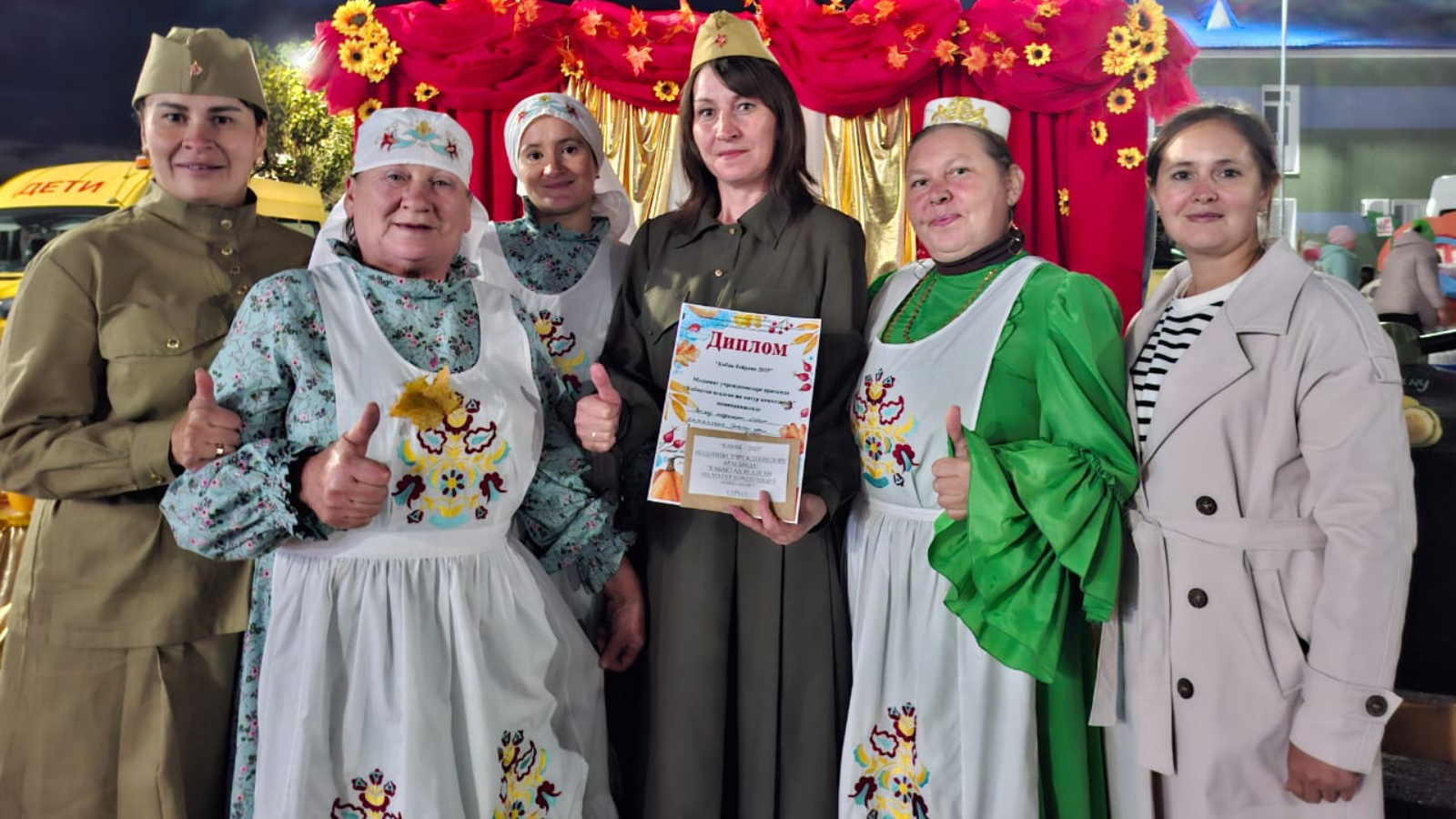 Лесхоз мәдәният йорты, Сабабаш авыл мәдәният йорты һәм китапханә хезмәткәрләре дә бәйрәм өчен бердәм, гармонияле композиция булдыруда зур көч куйдылар. Ашамлыклардан, кабактан ясалган кызыклы һәм гадәти булмаган ризыклардан өстәл сыгылып тора иде. Бәйрәм күңелле, дәртле җырлар һәм биюләр белән үрелеп барды. Җиңүнең 80 еллыгына багышланган композицияле якты, оригиналь фотозонабыз мәдәният коллективлары арасында 1 урынга лаек булды. Югары нәтиҗәләргә ирешүебезгә без бик шатбыз. Хезмәтебезне югары бәяләгән җитәкчеләребезгә зур рәхмәт.
